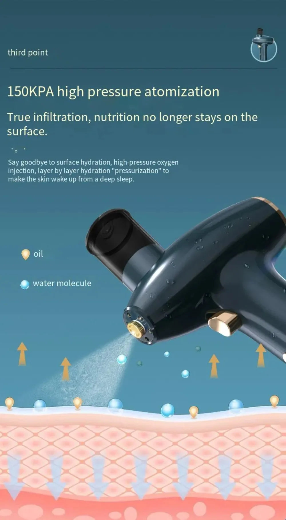 1. High-pressure nano-spray oxygen injection instrument: high-pressure oxygen injection + deep hydration + enhanced absorption, leaving your skin moist, smooth and vigorous.